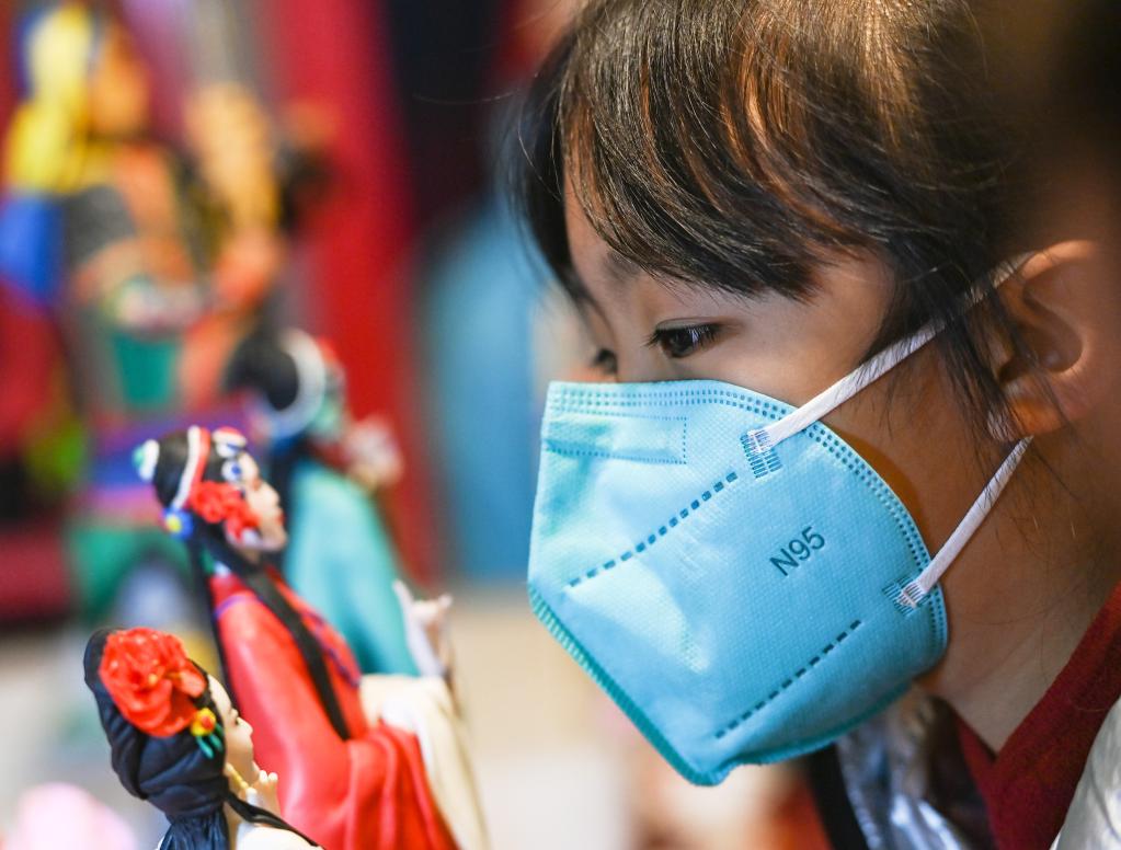 一位小游客在非遗大集上的曹州面人摊位前驻足。新华社记者 邹竞一 摄