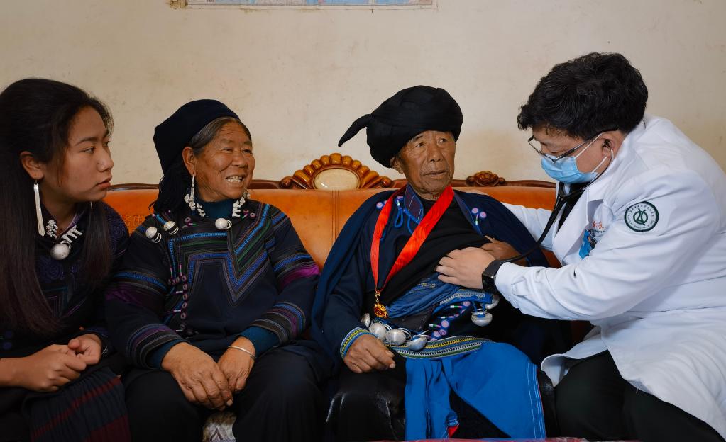 送医生出门时,何安贵黝黑的脸上皱纹笑得舒展开来:“我会按时量血压,定时吃药,‘卡沙沙’(谢谢)!”