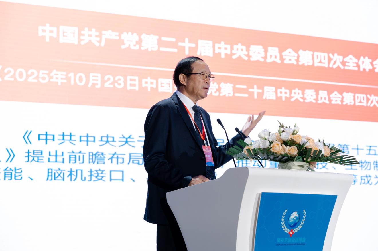 图:第十二届政协常委、中国农业大学原校长、东方企业创新发展中心专家委员会陈章良主任为领导嘉宾解读了新质生产力与生物医药产业发展,涵盖集成电路、生物医药、人工智能领域