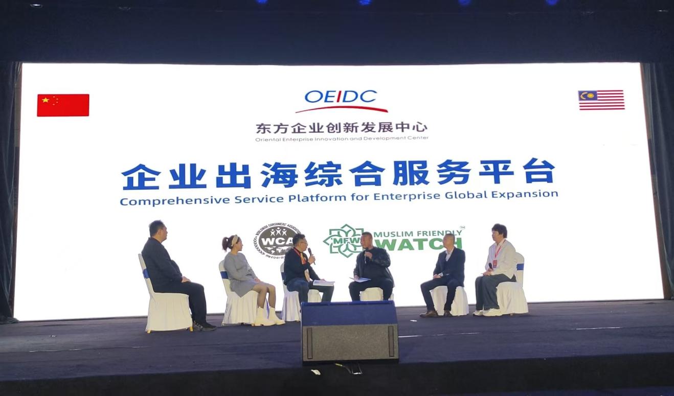 图:“助力企业出海”对话会上东方企业创新发展中心副秘书长王国红与马来西亚马中企业发展基金会执行会长、世界消费人协会顾问驻中国首席代表李立德为企业代表解读了中国与马来西亚相关服务政策以及马来西亚相关清真产业市场发展前景,并提出对企业出海企业的相关建议。